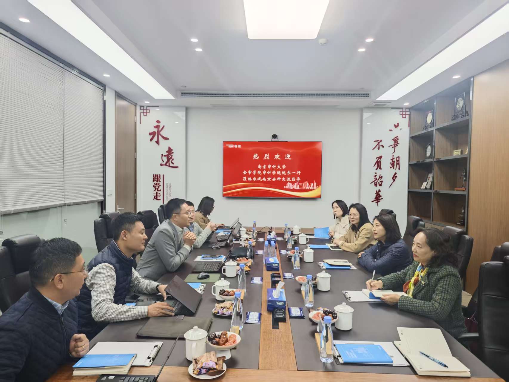 会谈中,双方进一步就建立常态化交流机制、共建“产教融合基地”、联合开展课程设计与实践教学等提出具体方案,致力于将真实审计场景与业务流程引入课堂,创新“产学研进校园”模式。此次交流为后续签署战略合作协议、推动合作项目落地奠定了坚实基础。本次走访是审计学院积极响应高等教育改革、拓展校企合作渠道的重要举措。通过联动知名会计师事务所,学院进一步优化人才培养体系,同时也为容诚江苏分所注入智力和创新活力,共同开创校企协同发展的新局面。