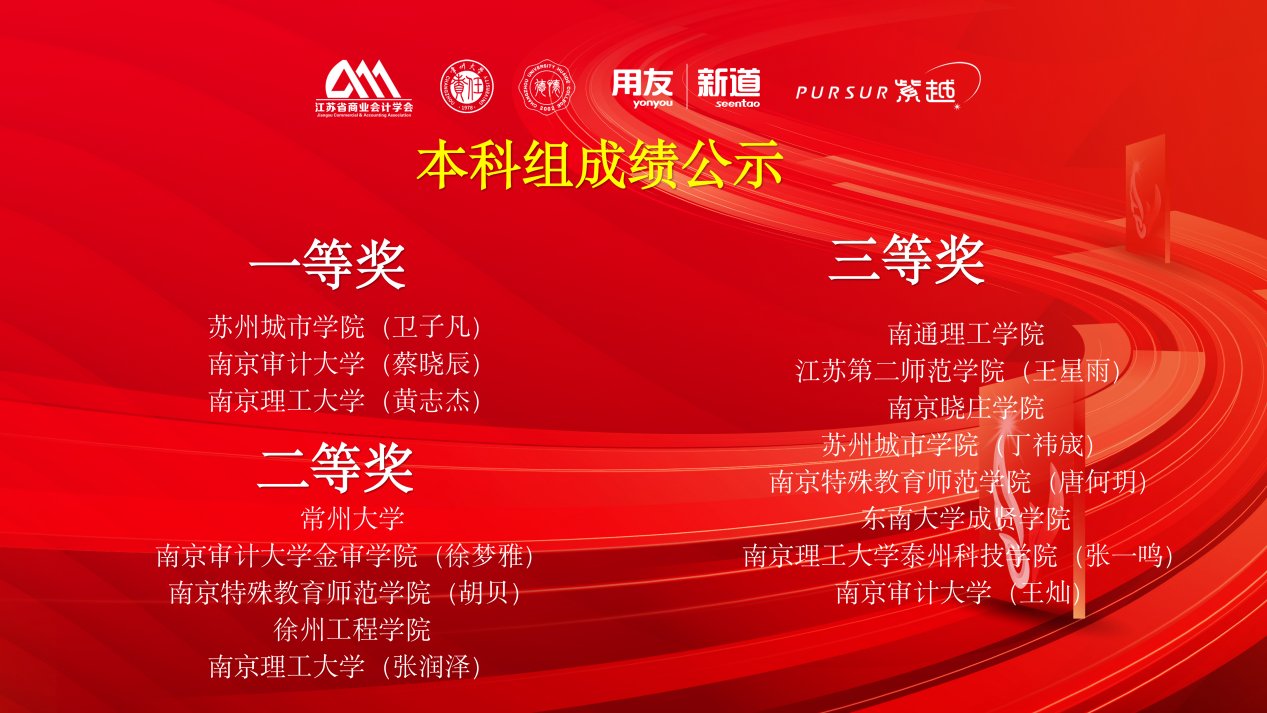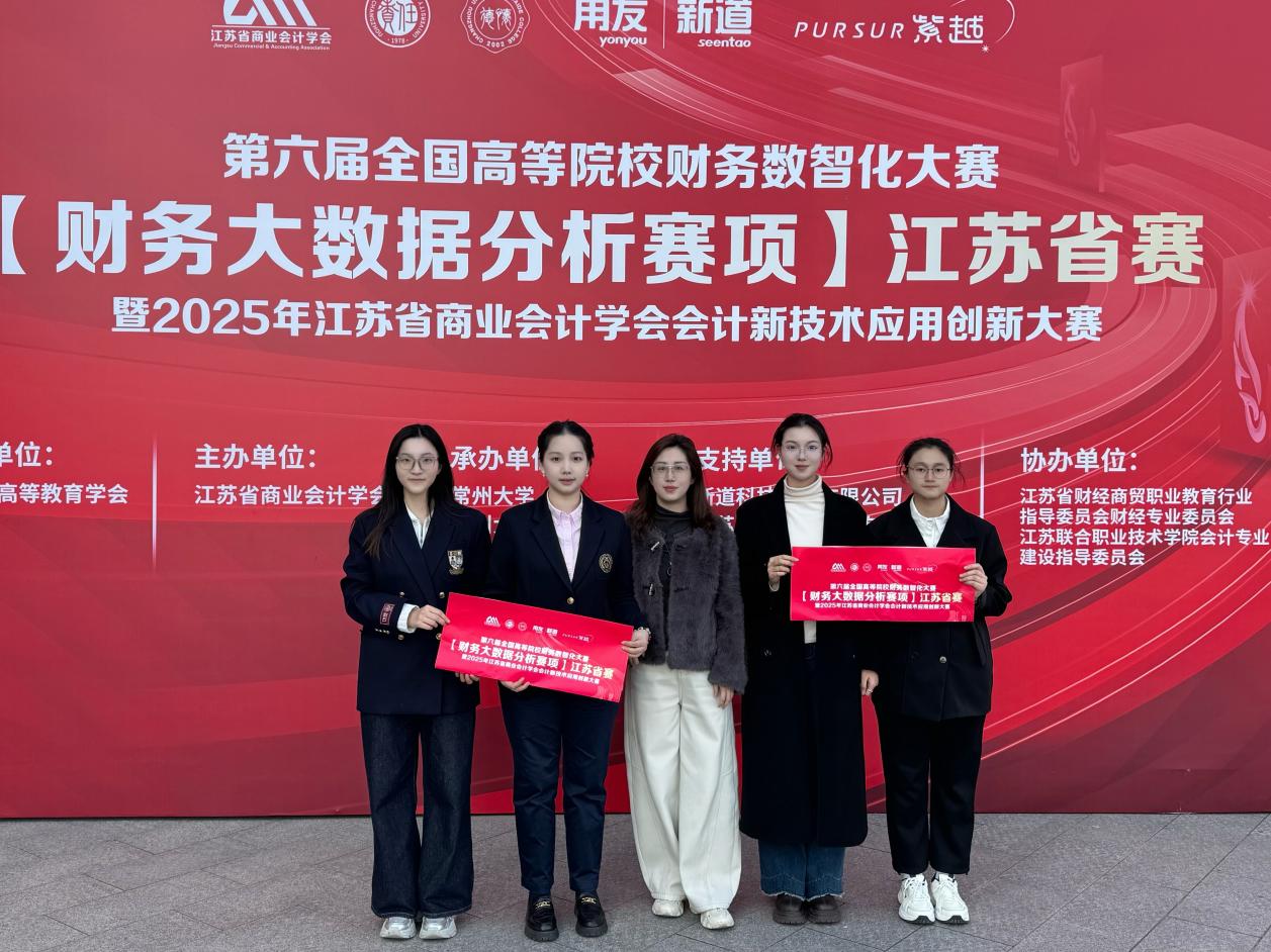 11月29日,第六届全国高等院校财务数智化大赛江苏省赛在常州大学圆满落幕。我校审计学院徐梦雅、何朕、帅雯丽、李子青组成的代表队在仲怀公、马圆明老师悉心指导下,凭借扎实的专业功底、默契的团队协作与出色的临场发挥,一路过关斩将,最终斩获二等奖,为学校赢得了荣誉。