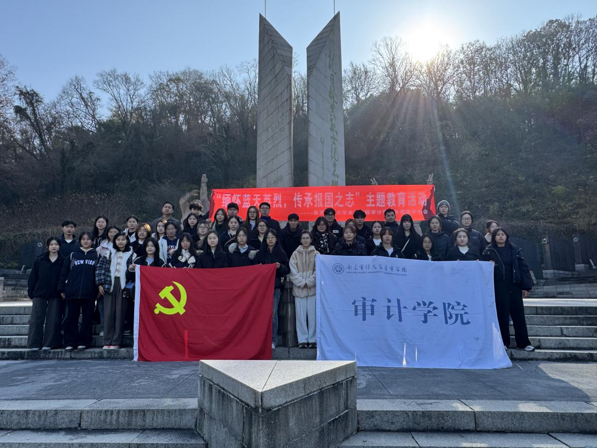 在南京大屠杀死难者国家公祭日来临之际,12月7日,审计学院组织50名共青团员兼团学骨干,在审计学院分团委书记段天彤老师的带领下,赴紫金山北麓的南京抗日航空烈士纪念馆开展主题教育活动,缅怀四千余名中外航空英烈,传承爱国报国的赤子情怀。