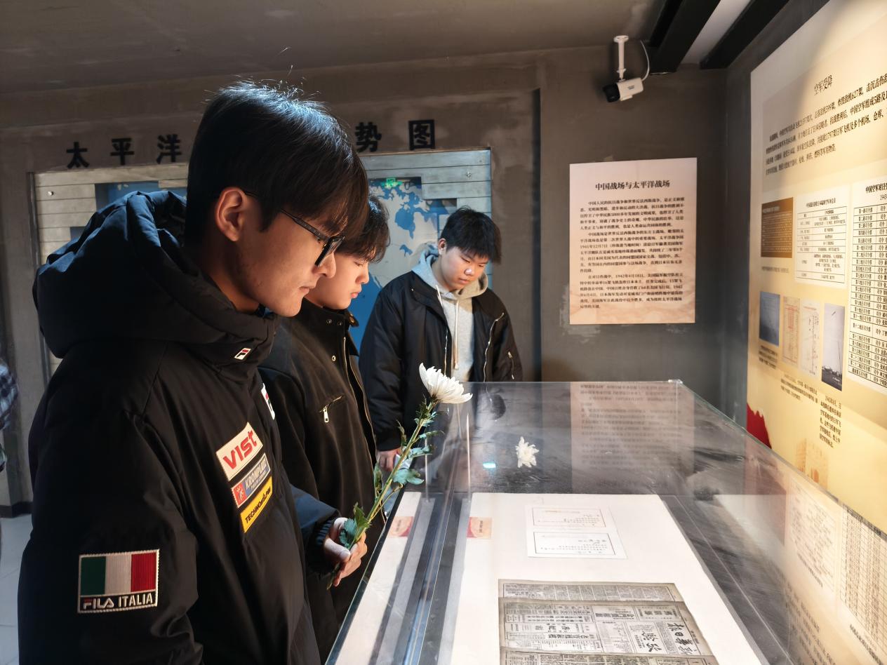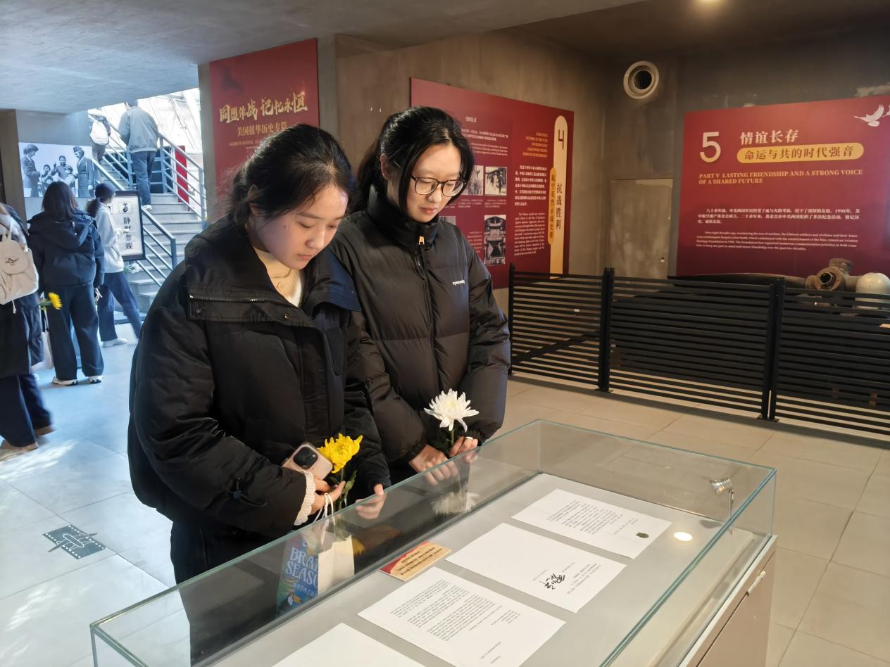 参观期间,师生代表手持洁白与金黄相间的菊花,缓步走向烈士纪念墙。大家神情肃穆,依次将鲜花轻轻置于墙前,深深鞠躬致意,以最质朴的方式向英烈们表达崇高敬意与深切哀思。朵朵鲜花寄托着对逝者的缅怀,映衬着师生们眼中的崇敬与坚定,成为纪念馆内一道承载着思念与传承的动人风景。