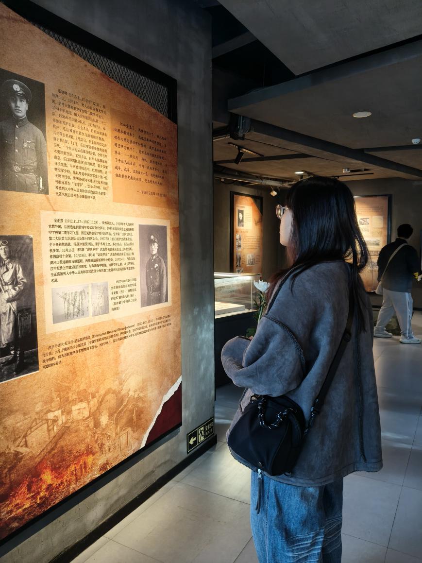 团员青年们驻足凝视各类史料与展品,在字里行间、实物细节中探寻英烈足迹。这些平均年龄不足二十五岁的飞行员,以“捐躯赴国难,视死忽如归”的信念奔赴疆场,中国将士的浴血奋战与苏美志愿航空队的并肩驰援,共同铸就了反法西斯战争的正义丰碑。沈崇诲等英烈以身殉国的壮举,让青年们深切震撼,更深刻体会到今日和平的来之不易。