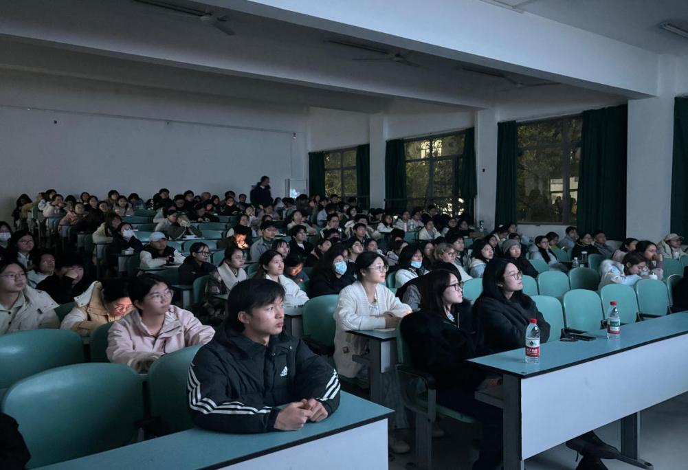 活动伊始,段老师上台作简短发言,深情回望1937年南京大屠杀的惨痛历史,强调国家公祭日的核心意义的同时,寄语全体学子铭记民族苦难、汲取奋进力量,以青年之姿扛起时代责任,珍惜当下和平生活的来之不易,发言质朴真挚,为整场观影活动奠定庄重肃穆的基调。