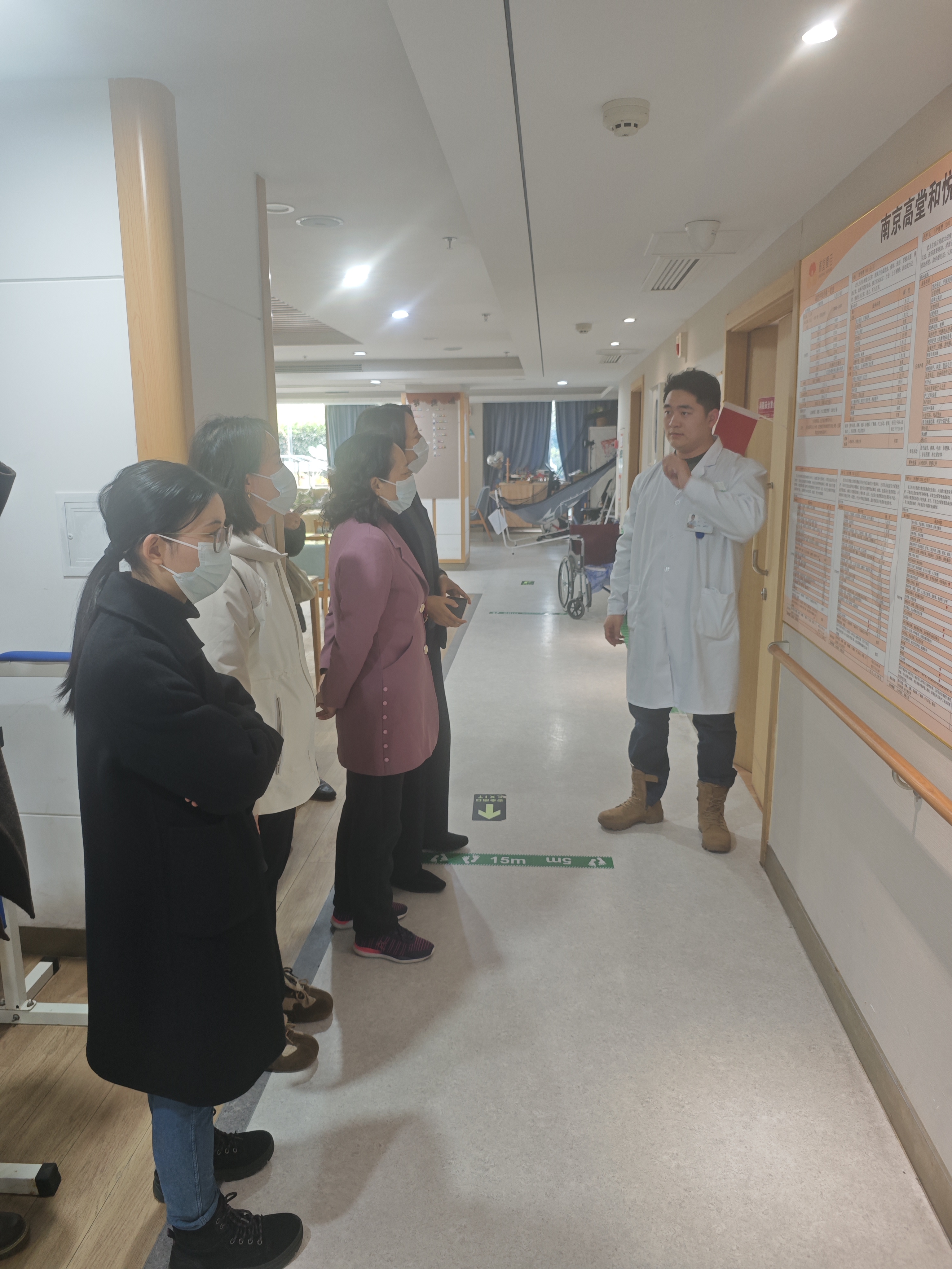 在江苏高堂养老颐养中心院长孙将来的陪同下,一行人员参观了中心的适老化设施、智能健康监测系统及功能活动空间。作为南京城市中心医养综合体的标杆项目,该中心秉持“人之父母,吾之高堂”的服务理念,依托江苏高堂医养产业集团的“护理院+养老院+培训学校”全产业链,致力于打造高标准的医养结合服务体系。通过现场观摩,参加调研的老师们对中心的现代化管理模式与产业化发展路径给予了充分肯定,并深刻感受到在社会需求与政策引领的双重驱动下,我国养老产业正朝着更加市场化、规模化与多元化的方向稳步前行。