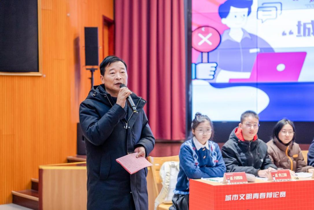 冒树怡同学作为正方辩手,阐述了“城市文明侧重引导公民自觉”的观点。她在发言中指出,外部的规范只有内化为自觉行为,才能具有持久性和生命力,才能真正实现“城市,让生活更美好”的愿景。评委给予很高评价,经过正反双方的激烈辩论,调研组认为,引导与规范并非二元对立,而是城市文明建设的“两翼”,如同车之双轮、鸟之两翼,缺一不可。