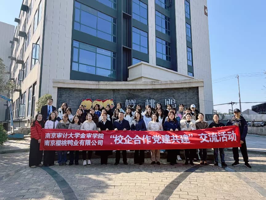 3月13日下午,我校审计学院师生代表在院长仲怀公的带领下,前往南京樱桃鸭业有限公司开展“校企合作党建共建”交流活动,并签订合作共建协议。本次活动是审计学院深化校企合作、探索党建引领下产学研融合新模式的一次实践。
