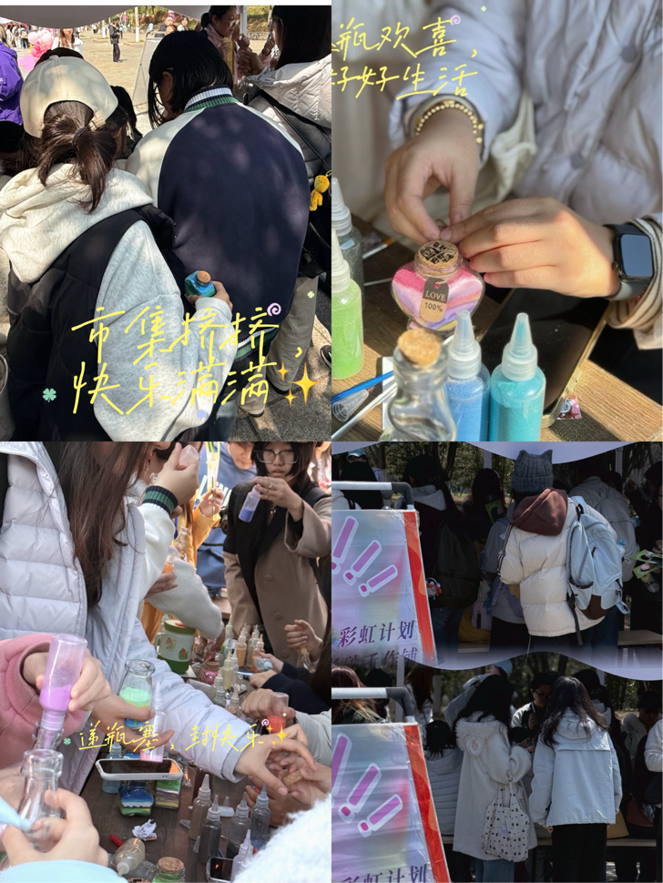 3月25日,审计学院心理委员会在石头广场发起了一场别开生面的“彩虹计划——解压彩砂手作铺”活动,吸引了全校众多同学热情参与,现场氛围轻松且治愈。