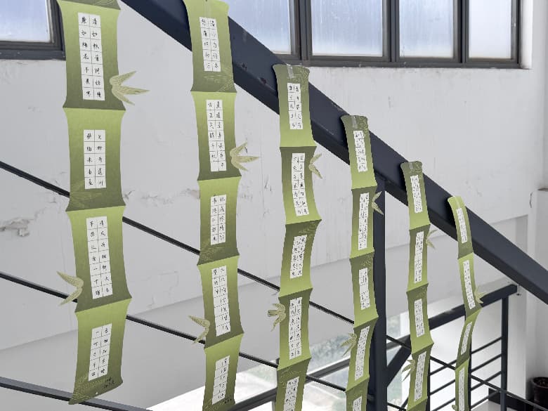 我院分团委组织同学们以“廉洁”为创作核心,精心制作竹形廉洁书签作品。大家将完成的竹形书签悬挂于教学楼楼梯间,与校园环境相映成趣。一张张竹笺错落垂挂,墨香与书香交织相融,让师生在日常通行中沉浸式感受廉洁文化熏陶,以匠心巧思诠释了廉洁文化的时代内涵与育人价值。