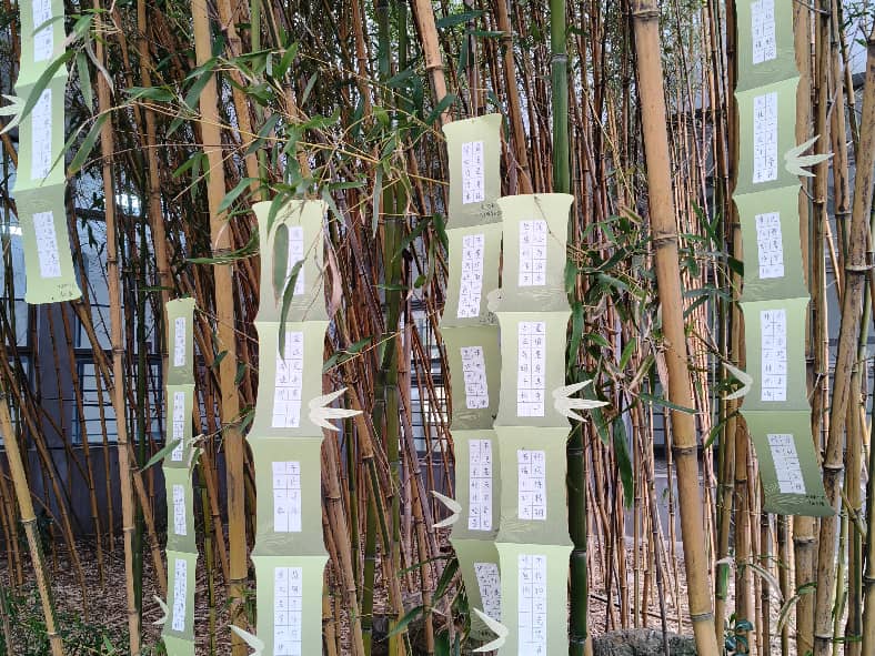 精心制作的竹形廉洁书签被悬挂于校园竹林之间,打造出自然意趣与廉洁文化交相辉映的特色廉洁景观。同学们以竹喻君子,在竹形卡纸上书写廉洁警句与经典诗词,将竹“宁折不弯、中空有节”的君子品格,与“清正廉洁、修身律己”的价值追求有机融合,让师生在漫步休憩中沉浸式感受廉洁文化熏陶,切实营造出“步步见廉景、时时沐廉风”的浓厚育人氛围。