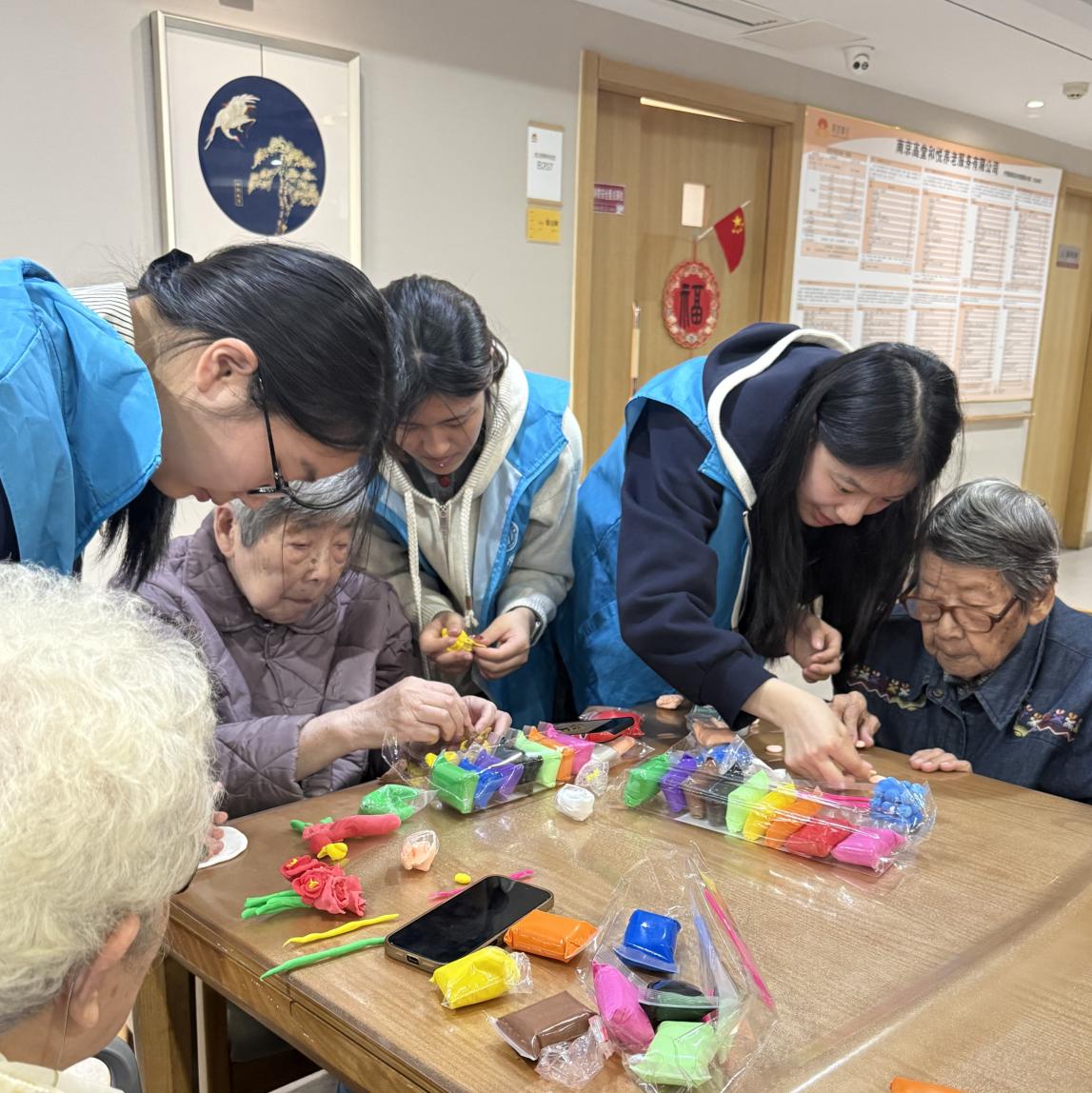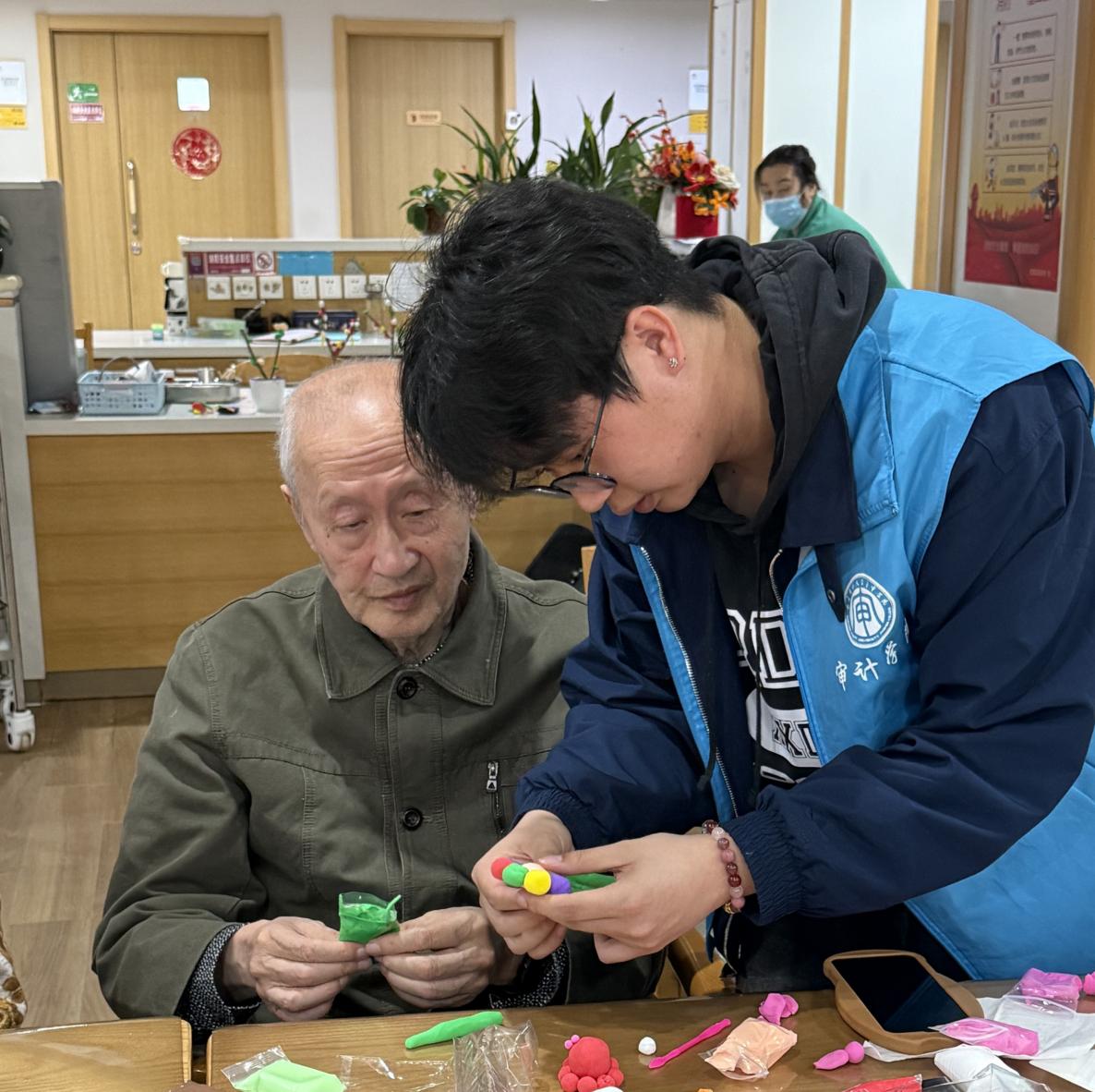 陪伴过程中,志愿者们始终满怀热忱、温柔耐心。他们俯身蹲守,手把手指导老人调整黏土造型;静心倾听长者过往故事,将温情融入作品细节,让每一件手作都承载着专属记忆;用镜头定格老人创作时的灿烂笑颜,指尖沾满的黏土碎屑展现着幸福的印记。在双向奔赴的陪伴与协作中,志愿者们以行动传递温暖、收获感动,让养老院处处洋溢着欢声笑语与春的活力。