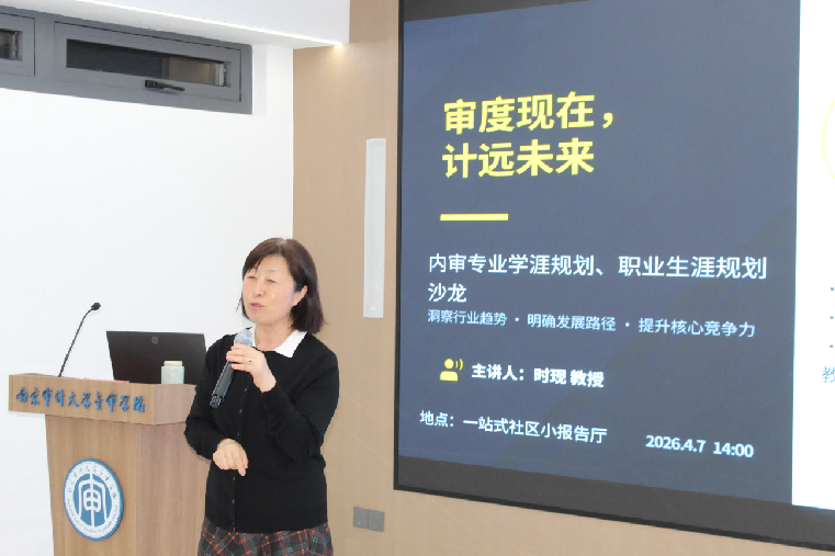 为紧密契合内部审计行业发展新趋势,深化专业内涵建设,助力学生明确专业学习与职业发展路径,4月7日下午,审计学院在“一站式”学生社区报告厅成功举办了以“审度现在,计远未来——内部审计专业学涯规划与职业生涯规划”为主题的学术沙龙活动。活动特别邀请了中国内部审计协会副会长、管理学博士、博士生导师时现教授担任主讲嘉宾,审计学院党总支书记王亚娜带领师生代表齐聚一堂,就内部审计的专业定位、人才培养模式、能力构建以及未来职业前景等议题展开研讨与交流。