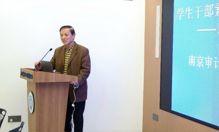 尹平教授围绕活动主题,将审计学科“独立、客观、公正、审慎”的职业特质与高校学风建设深度融合,明确了学生干部成长的核心方向。他指出,审计学院学生干部需率先践行“扬审计之风”,以审计精神引领学风建设,把严谨求实、规范自律的职业理念融入日常学习与工作之中。他进一步强调,学生干部是学风建设的“领头雁”,要以“专业立身、作风立标”为准则,带头钻研审计理论、苦练专业技能,夯实知识根基;同时,要主动承担学风建设的责任,通过组织专业研讨、案例分享、知识竞赛等活动,传播审计文化,使求真务实成为校园学习生活的鲜明特色,达成“筑学风之基”的育人目标。