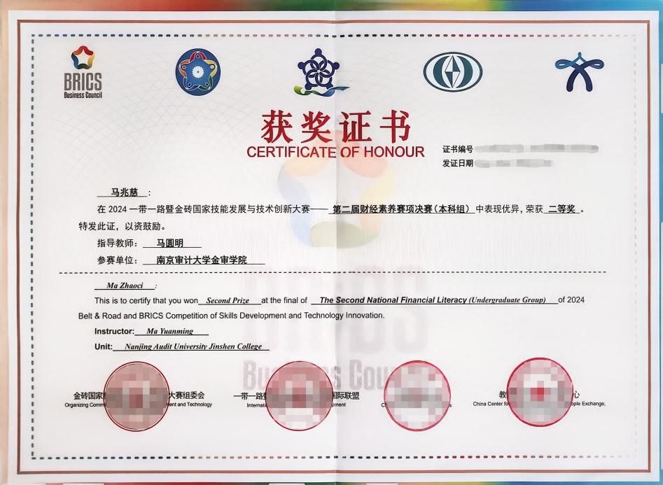 从“一带一路”暨金砖大赛财经素养赛项“全国总决赛二等奖”(A2类竞赛),到金砖职赛财务管理及大数据应用技能赛项“国际总决赛三等奖”;从江苏省高等数学竞赛本科二级组二等奖,到“科云杯”企业税务及经营管理技能大赛二等奖、“衡信杯”个税师精英挑战赛(本科组)一等奖……她一步一个脚印,用奖项见证成长。“以赛促学,以赛强技,以赛提能”——她不只是为了荣誉,更是为了在实战中看清自己的方向。