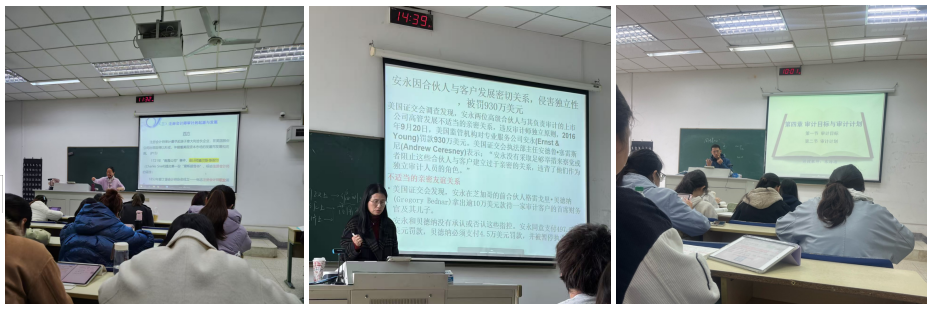 授课教师学识渊博、视野开阔,运用鲜活的实务案例与前沿教学方法,对课堂把控张弛有度,为大家呈现了高质量的教学示范,也为后续教学反思与课程优化明确了方向。参与教师纷纷表示,此次跨校听课学习让大家深刻意识到,教师不仅要做好课堂教学的“输出”,更要重视专业能力的持续“输入”。这种沉浸式的学习交流,让教师对审计专业课程的教学目标与育人导向有了更深刻的理解,也激发了主动打磨教学细节、打造高效课堂的动力。
