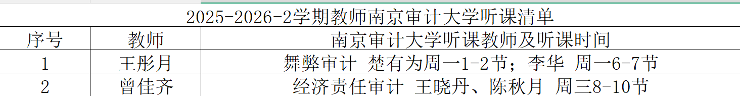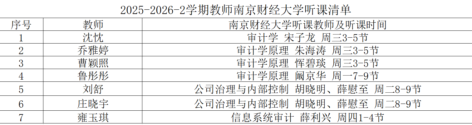 本学期校外听课学习是审计学院落实“学思行果”教师专业发展体系中的关键环节,为教师搭建了跨校教学交流的优质平台,为学院教学质量的持续提升注入新动能。